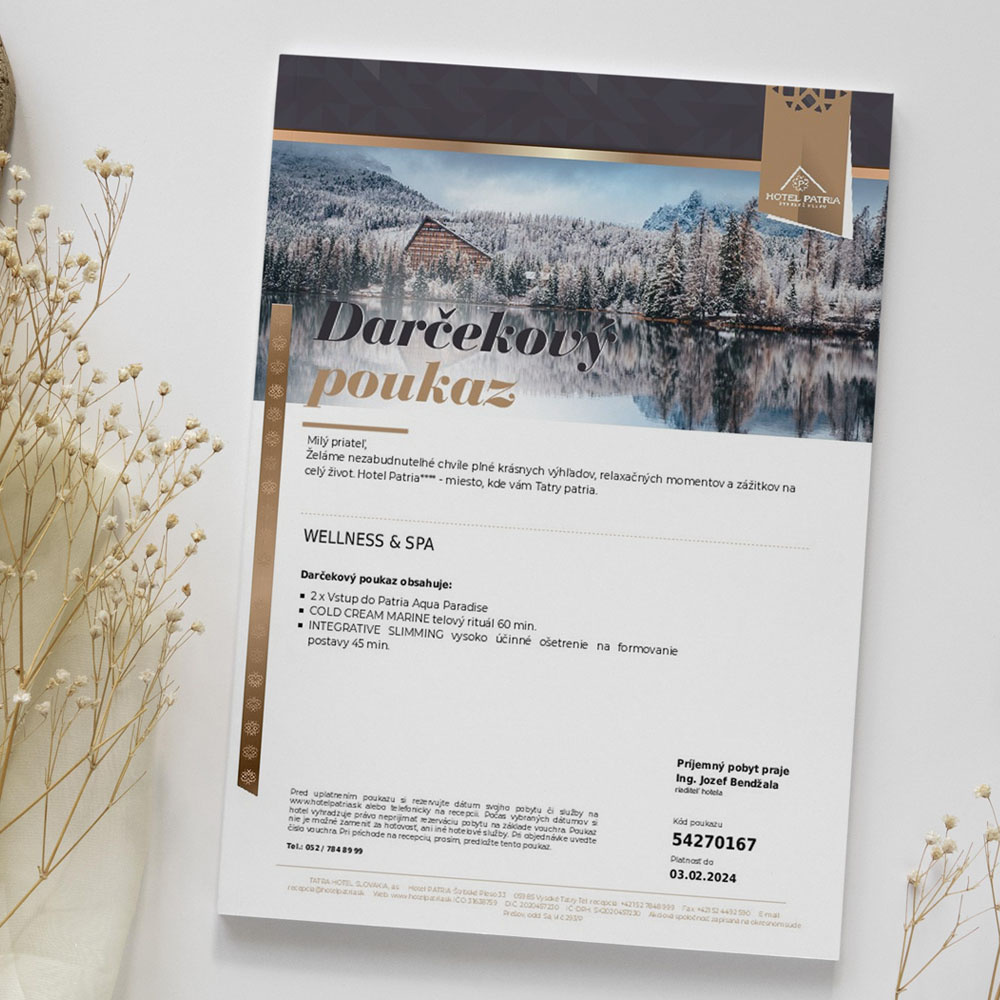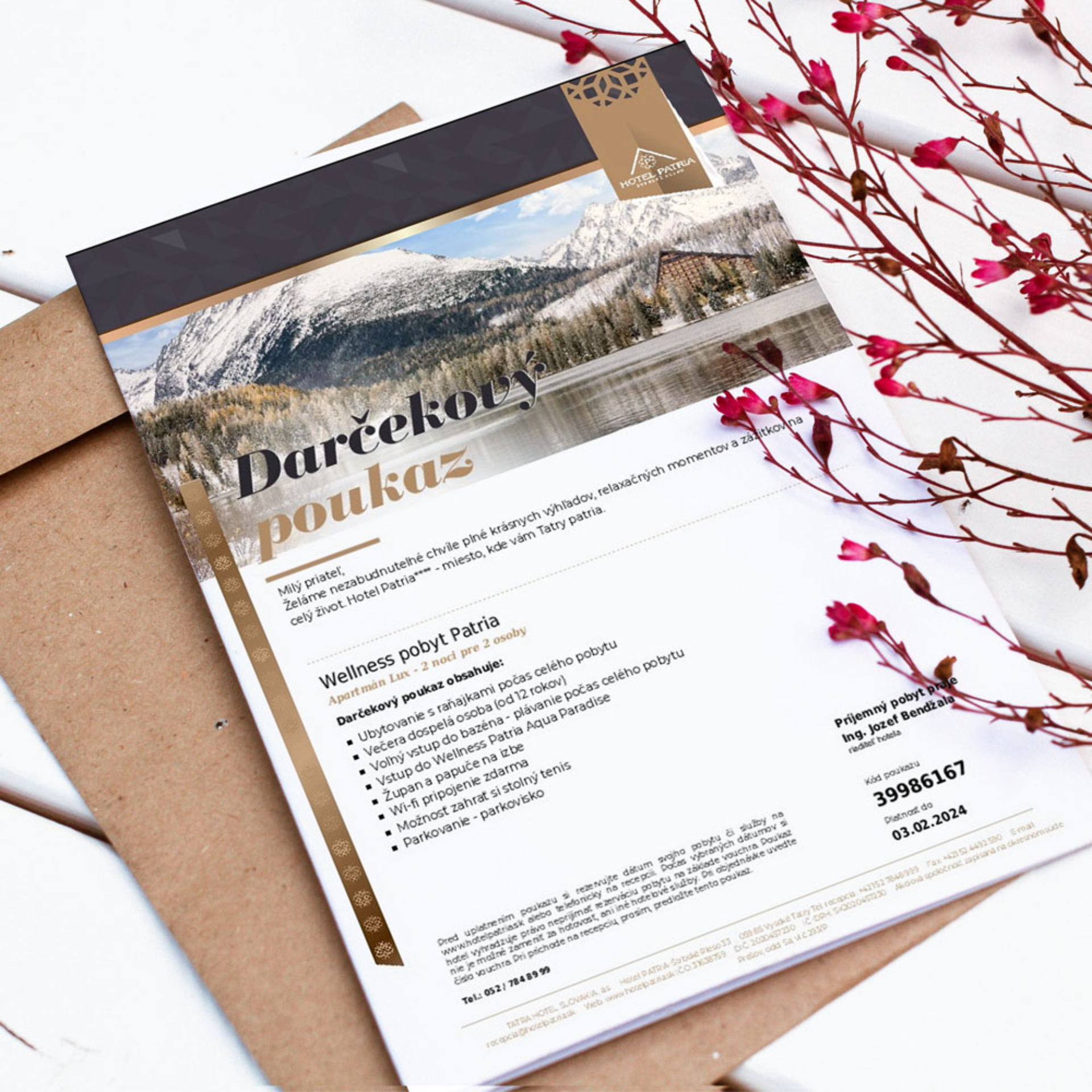 You can choose from the prepared stay packages of Patria Hotel ****, pick up the package according to your breaks or donate services in the form of massages and treatments in our hotel. You can choose from original designs vouchra and also join personal dedication.